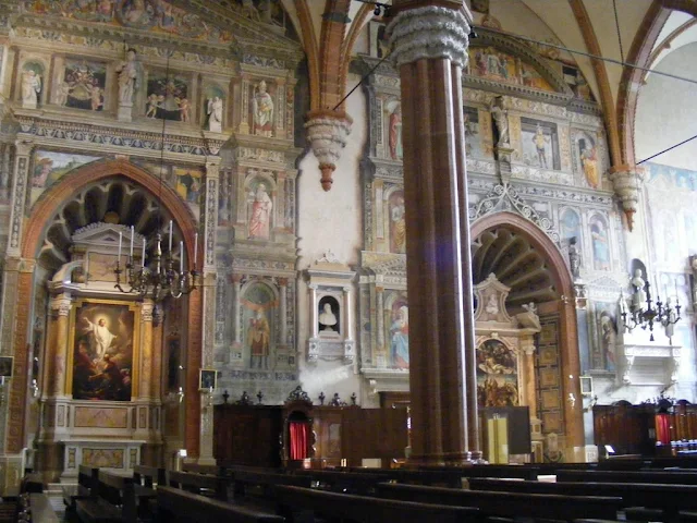 Наспахме се добре и на другата сутрин тръгнахме отново на разходка. Първата спирка беше базиликата Сан Дзено (Chiesa San Zeno). Това е най-старата и известна църква, и нейния патрон е донесъл християнството на жителите на Верона през 362 г. Самата църква е построена през 806 г, на мястото, където Сан Дзено бил изгорен на кладата. По късно църквата е разрушена и построена отново през 10 -ти век. За съжаление заметресението през 1117 година нанесло големи щети на базиликата и в сегашния си вид е завършена през 14-ти век.
